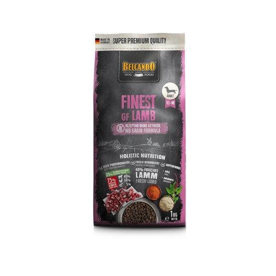 A Belcando Finest GF Lamb kis- és közepes termetű rasszba tartozó, kifejlett, válogatós, gabonára érzékeny kutyák számára készült teljes értékű kutyaeledel. Mint különlegesség, a BELCANDO FINEST GF Lamb -ot a még jobb ízletesség érdekében, egy speciális szósszal vonták be. Amennyiben három egység BELCANDO FINEST GF Lamb-ot egy egység 40 – 50 °C-os meleg vízzel (3:1 arányban) gondosan összekever, akkor egy különösen ízletes szószbevonat képződik az eledelen. Ez kitűnő ínyencség a válogatós kutyák számára. A BELCANDO FINEST GF Lamb szárazon etetve is különösen ízletes.