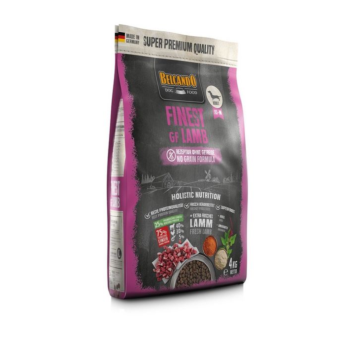 A Belcando Finest GF Lamb kis- és közepes termetű rasszba tartozó, kifejlett, válogatós, gabonára érzékeny kutyák számára készült teljes értékű kutyaeledel. Mint különlegesség, a BELCANDO FINEST GF Lamb -ot a még jobb ízletesség érdekében, egy speciális szósszal vonták be. Amennyiben három egység BELCANDO FINEST GF Lamb-ot egy egység 40 – 50 °C-os meleg vízzel (3:1 arányban) gondosan összekever, akkor egy különösen ízletes szószbevonat képződik az eledelen. Ez kitűnő ínyencség a válogatós kutyák számára. A BELCANDO FINEST GF Lamb szárazon etetve is különösen ízletes.
