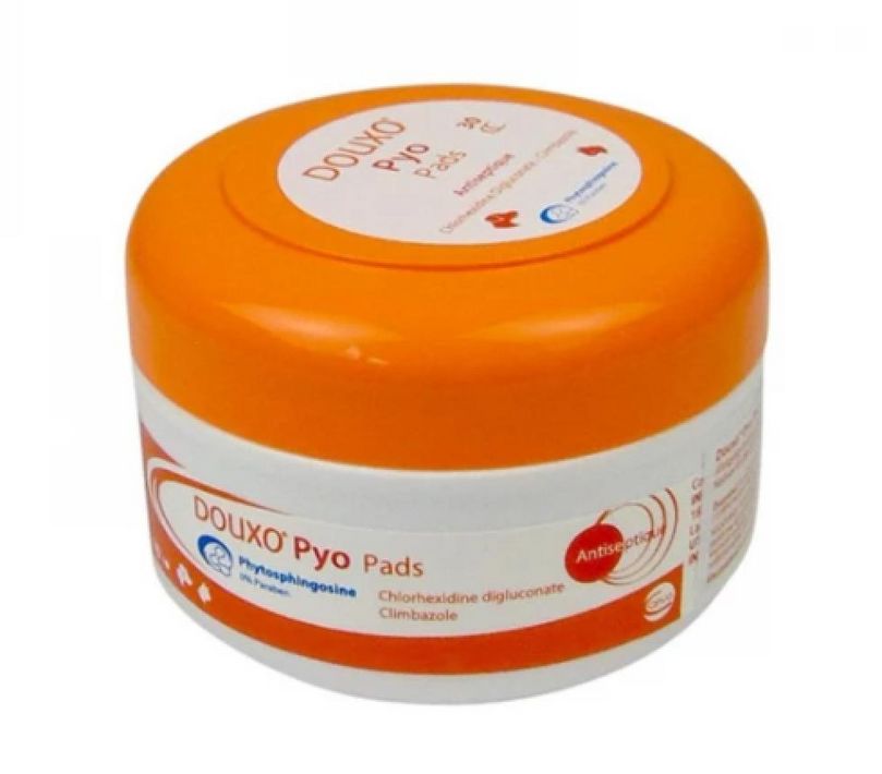 A DOUXO® S3 PYO Törlőkendő 3% klórhexidin-diglükonátot tartalmaz az erős antibakteriális és gombaellenes hatásért.
