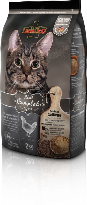 A LEONARDO® Adult 32/16 az alacsony aktivitási szintű macskák számára kínál egy finom ízvariációt, csökkentett energiatartalommal (16% zsír).