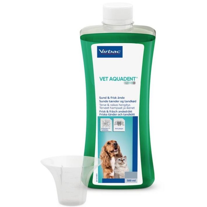 A Vet Aquadent ízesített szájhigiéniai oldat, amely csökkenti a szájszagot, és lassítja a fogkő kialakulását.